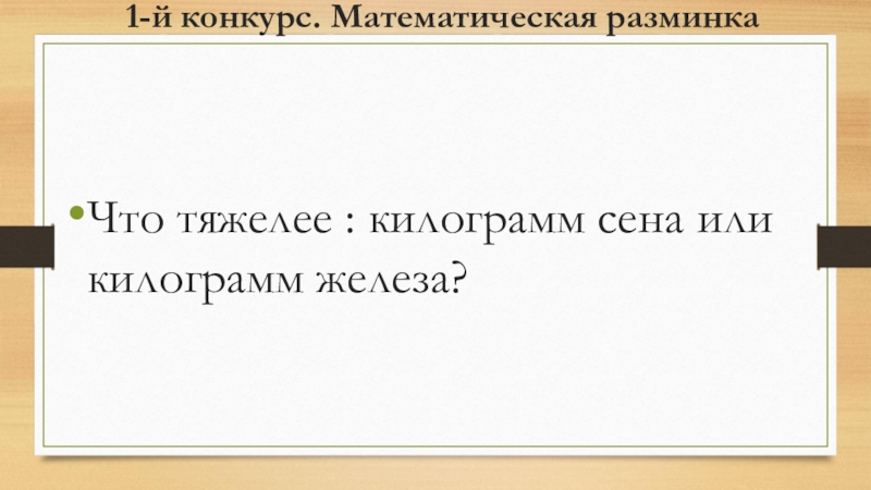 1-й конкурс. Математическая разминкаЧто тяжелее : килограмм сена или килограмм железа?