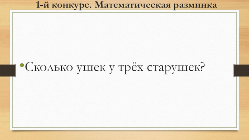1-й конкурс. Математическая разминкаСколько ушек у трёх старушек?