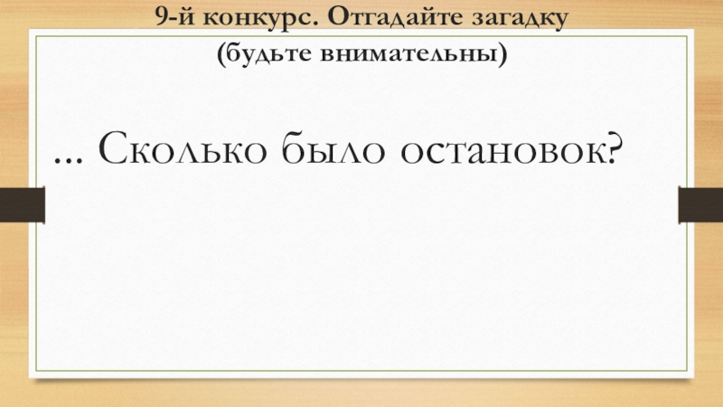 9-й конкурс. Отгадайте загадку  (будьте внимательны) ... Сколько было остановок?