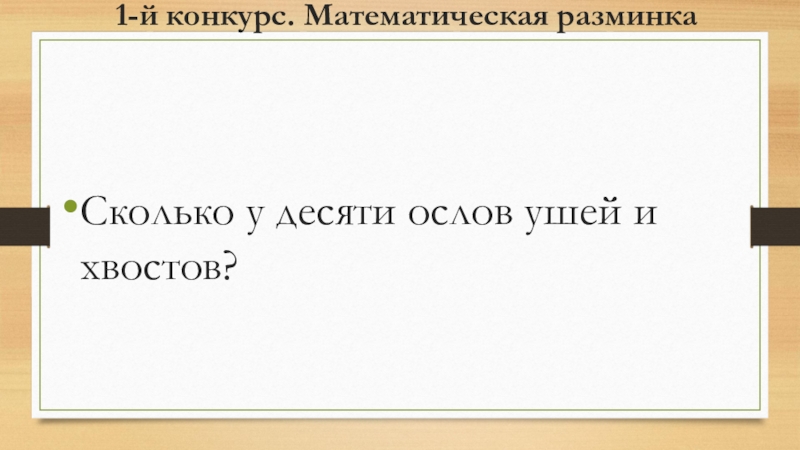 1-й конкурс. Математическая разминкаСколько у десяти ослов ушей и хвостов?