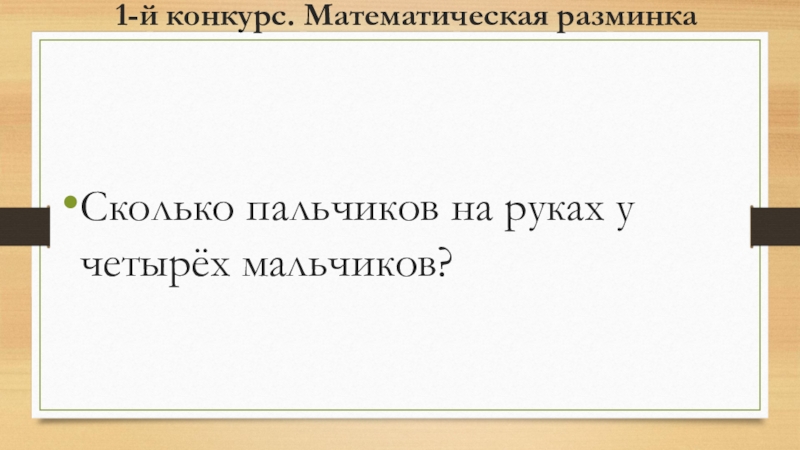 1-й конкурс. Математическая разминкаСколько пальчиков на руках у четырёх мальчиков?