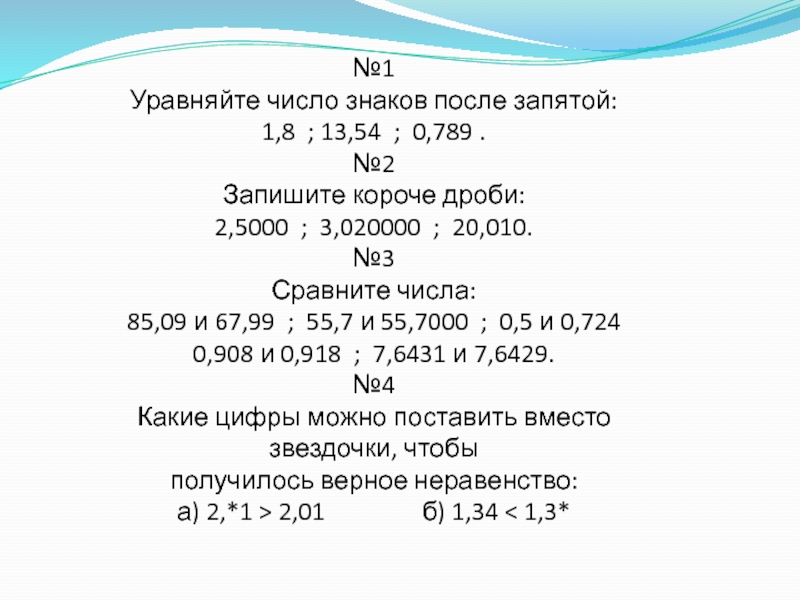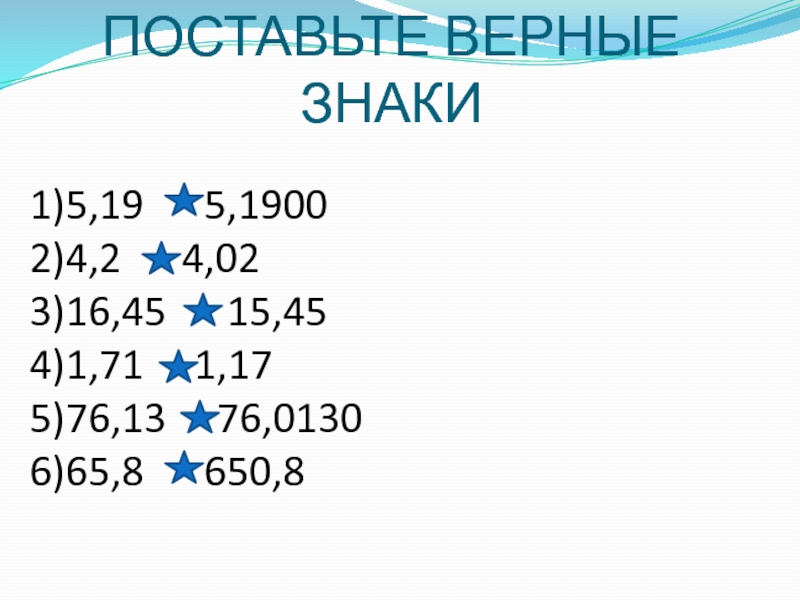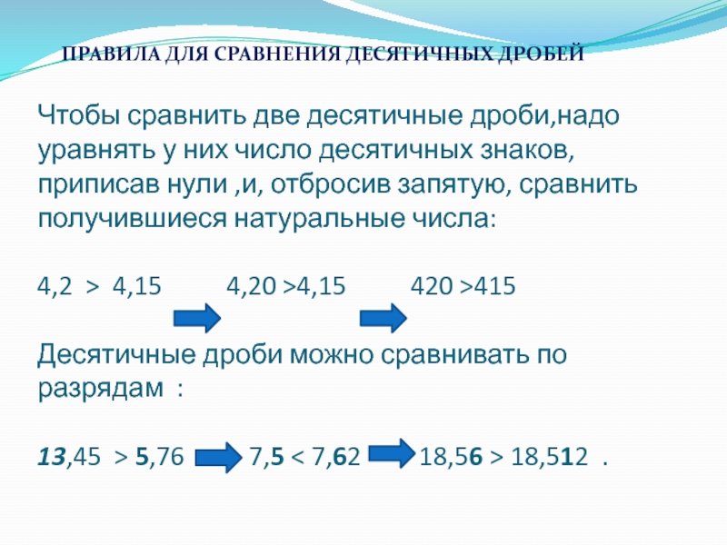 ПРАВИЛА ДЛЯ СРАВНЕНИЯ ДЕСЯТИЧНЫХ ДРОБЕЙ