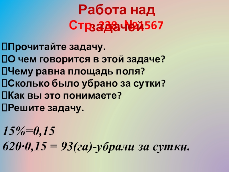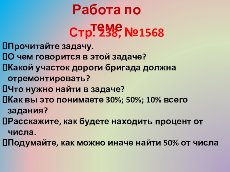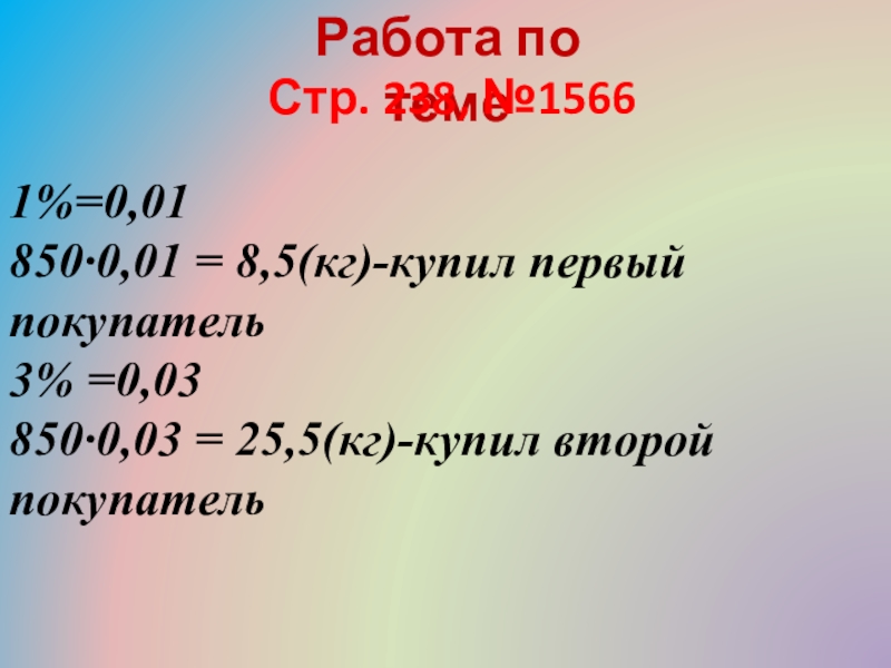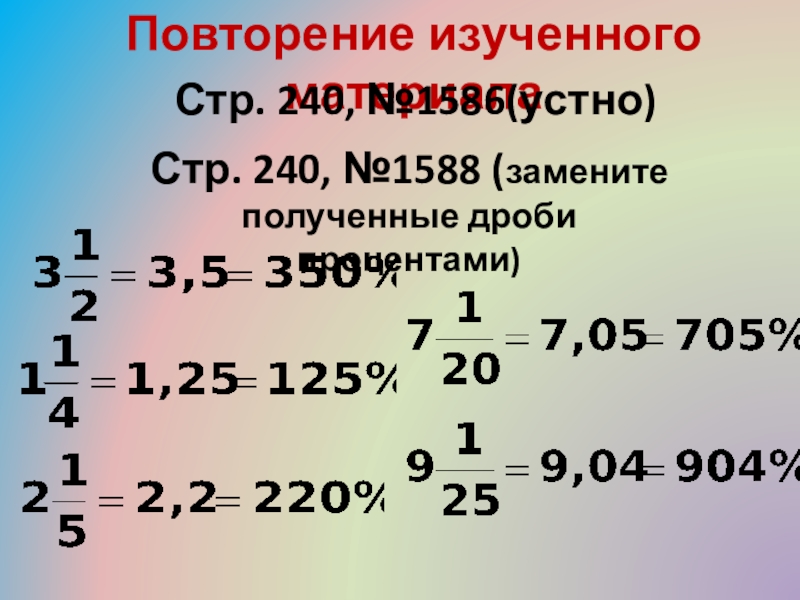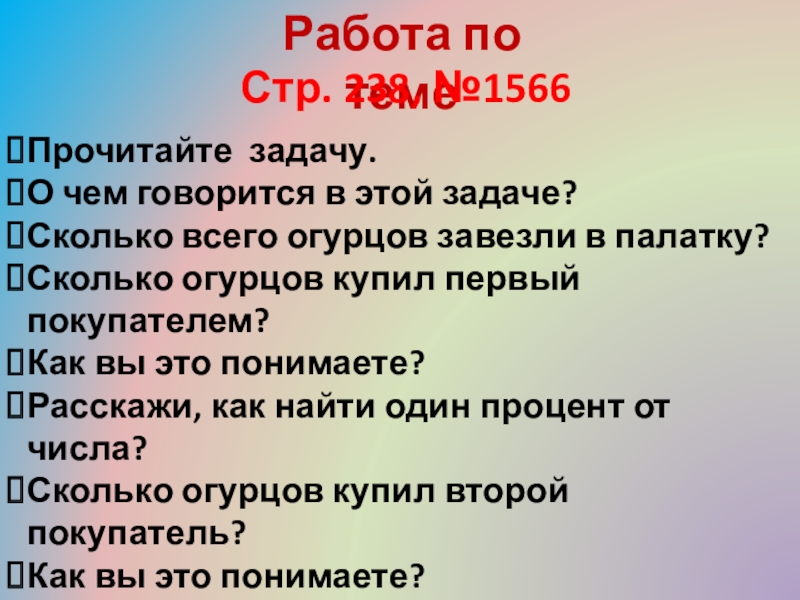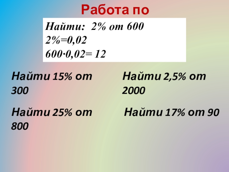 Ознакомиться с задачами на нахождение процентов от числа. Совершенствуем вычислительные навыки.