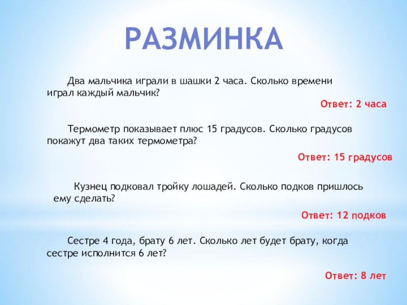 Сестре 4 года, брату 6 лет. Сколько лет будет брату, когда сестре исполнится 6 лет?