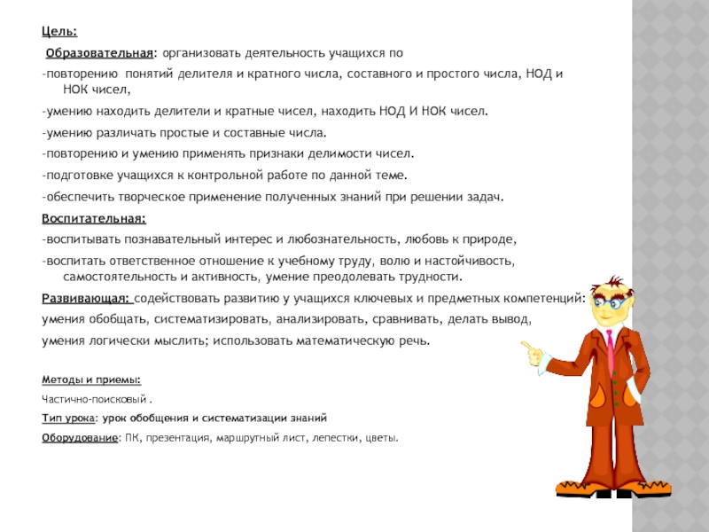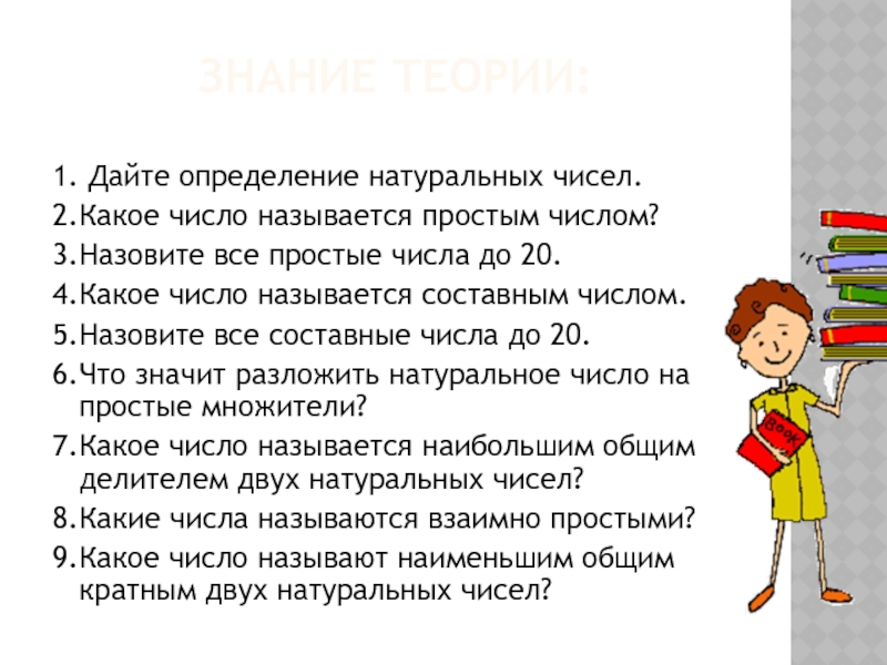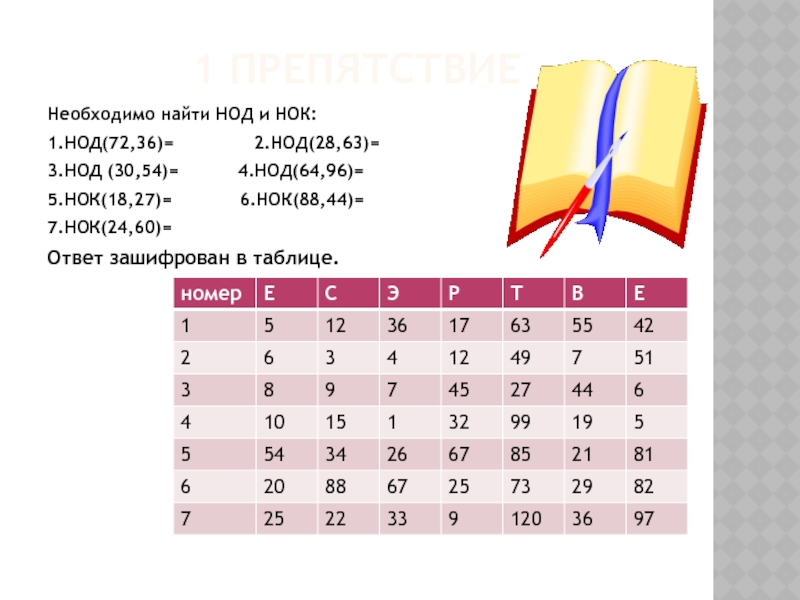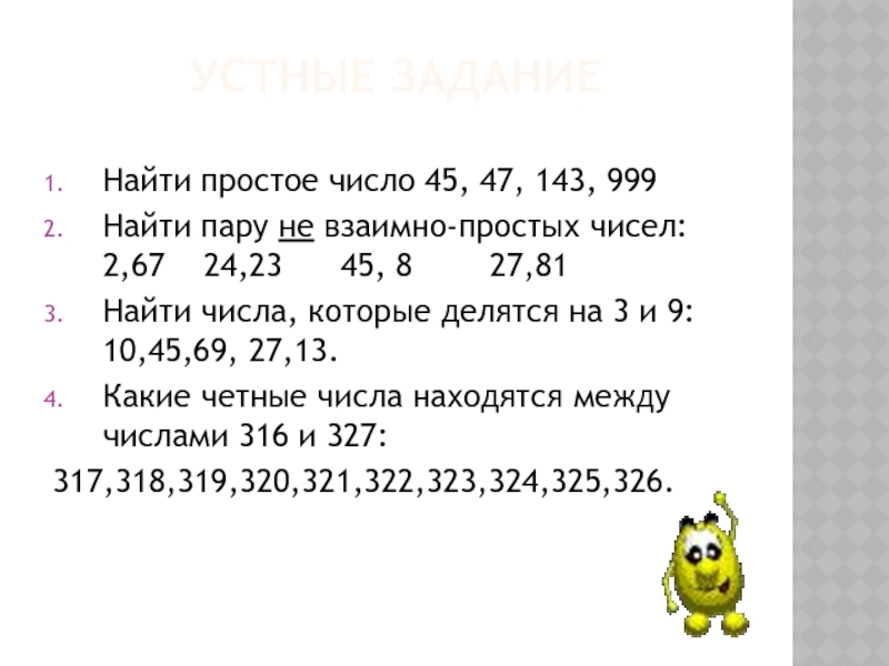 Слайд 1«Признаки делимости,Решение примеров на нахождение наибольшего общего делителя и наименьшего общего