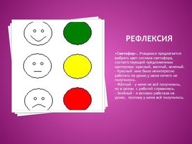 - Зелёный – я активно работала на уроке, поэтому у меня всё получилось.