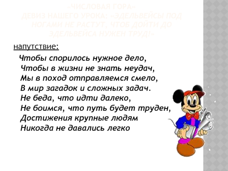 девиз нашего урока: «Эдельвейсы под ногами не растут, чтоб дойти