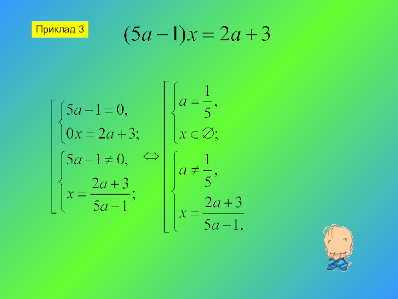 3) Якщо a 0, b 0, то рівняння має вид ax=b.