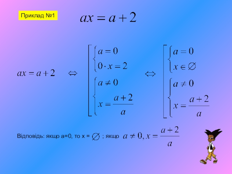 2) Якщо a=0, b 0, то рівняння приймає вигляд 0x=b.
