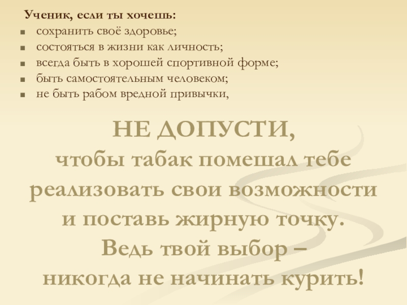 не быть рабом вредной привычки,