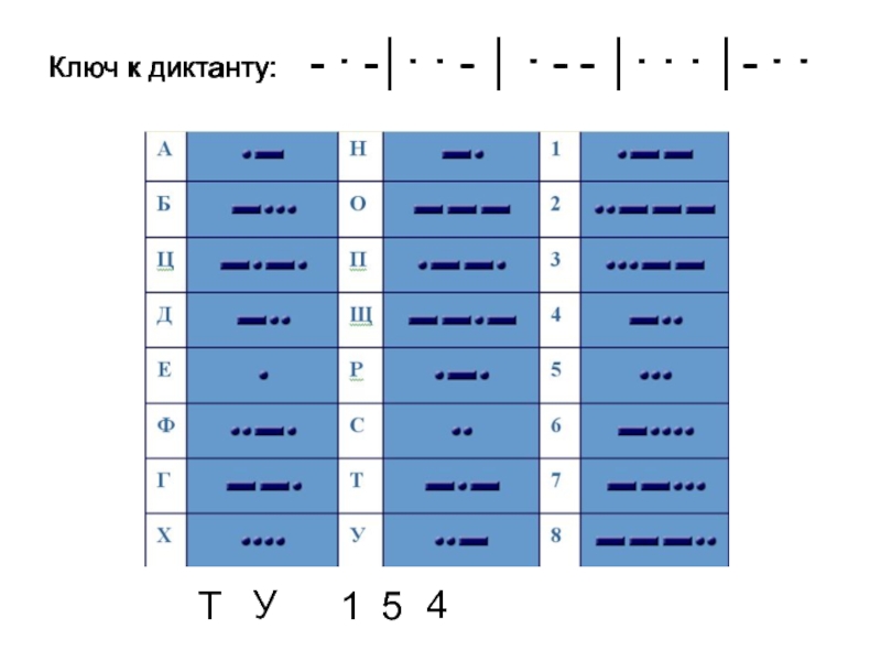 Ключ к диктанту: - · -│· · - │ · - - │· · · │- · ·