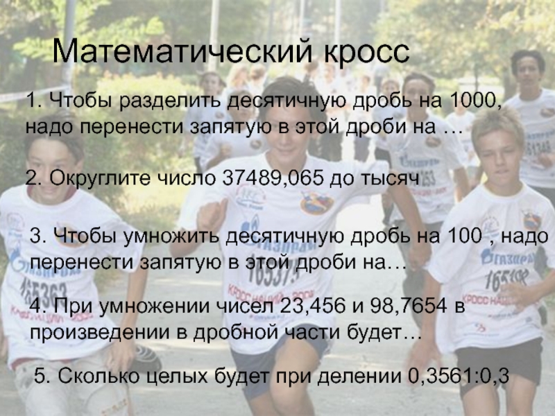 3. Чтобы умножить десятичную дробь на 100 , надо перенести запятую в этой дроби на…