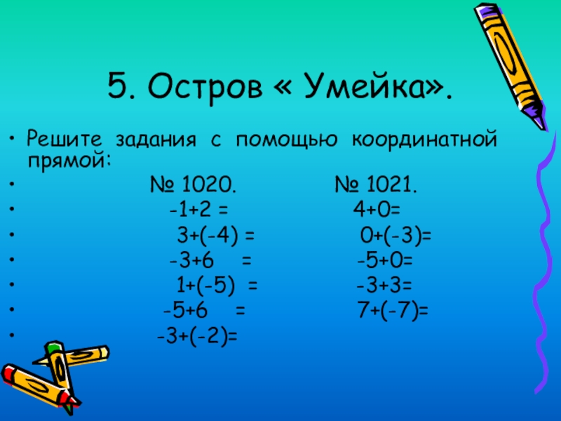 Тема: Сложение чисел с помощью координатной прямой.