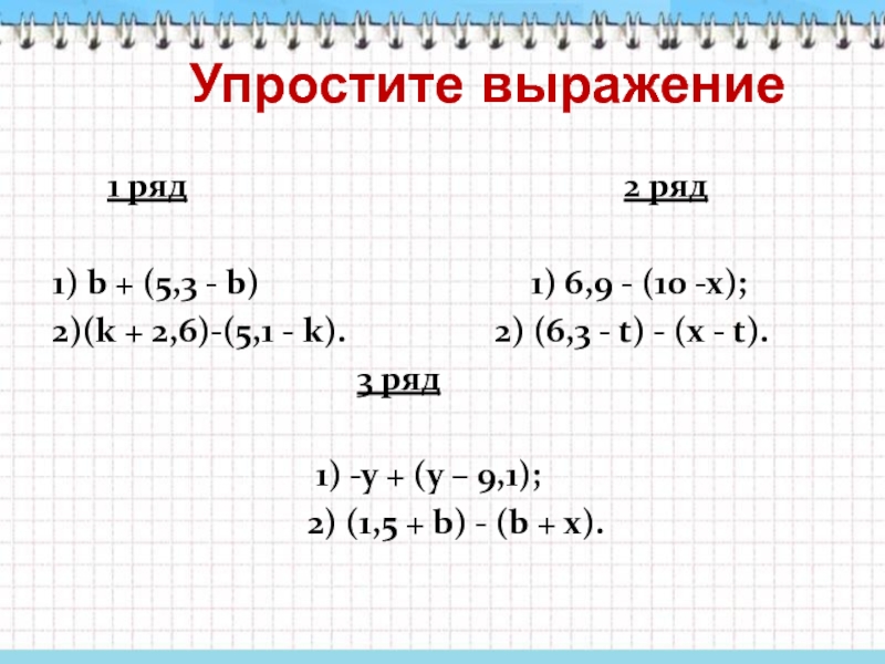 2) Составьте разность выражений (4,8 +y) и (- 6,3 +y) и упростите ее;