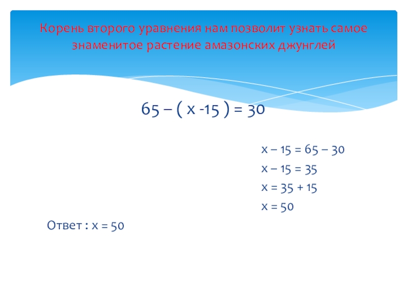 Корень второго уравнения нам позволит узнать самое знаменитое растение амазонских джунглей