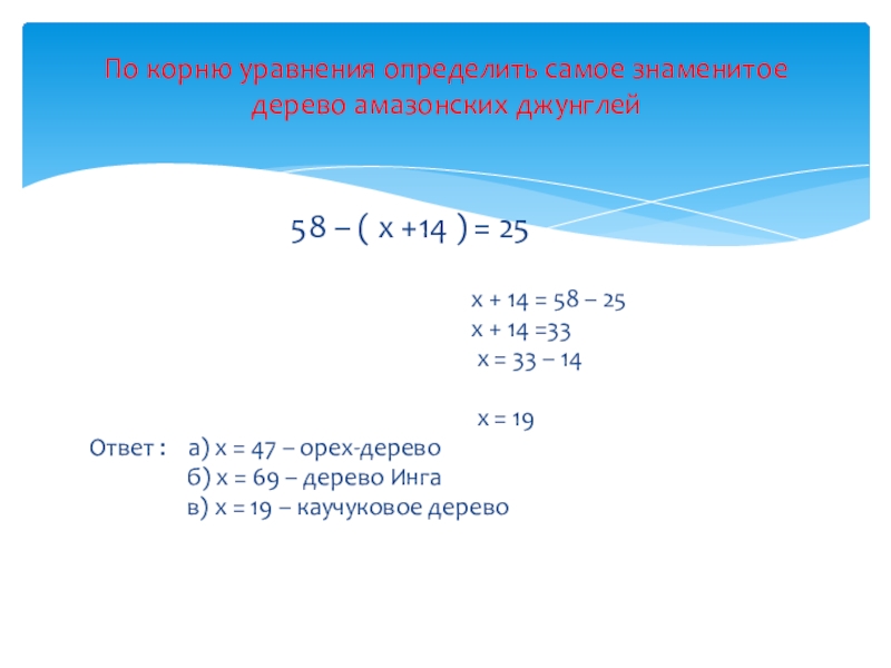 По корню уравнения определить самое знаменитое дерево амазонских джунглей