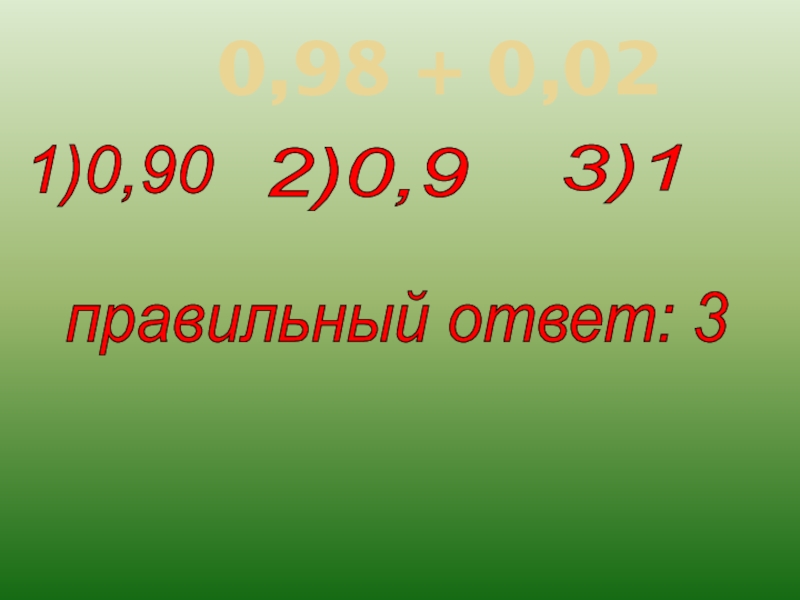 0,98 + 0,022)0,9 1)0,90 правильный ответ: 3 3)1