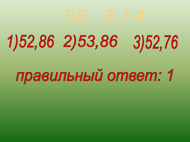 56 - 3,142)53,86 1)52,86 правильный ответ: 1 3)52,76