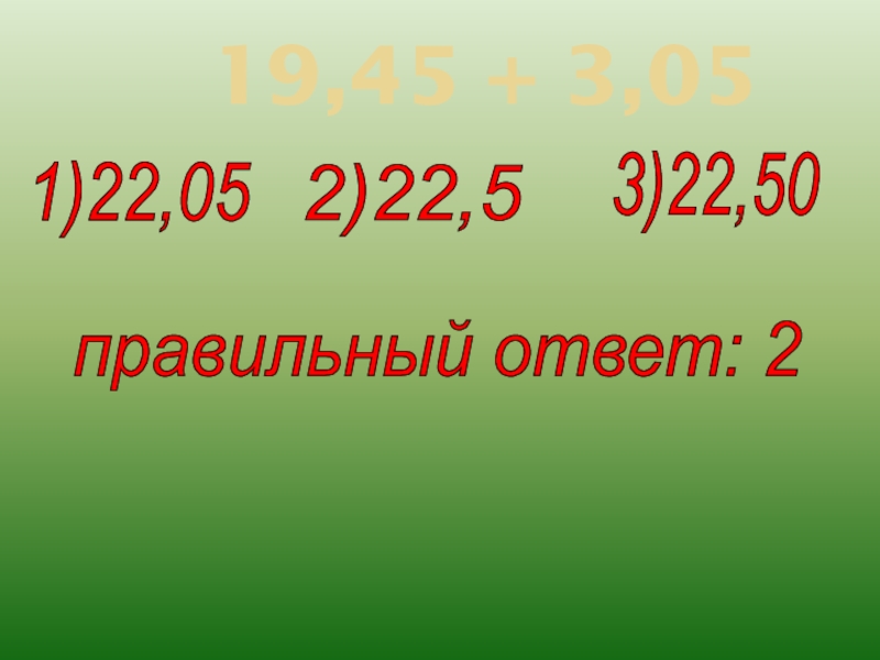 19,45 + 3,052)22,5 1)22,05 правильный ответ: 2 3)22,50