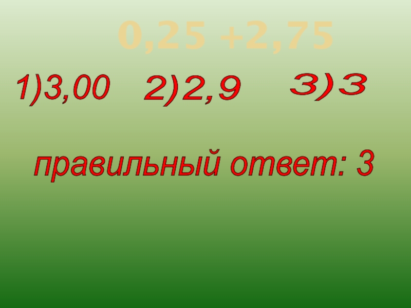 0,25 +2,752)2,9 1)3,00 правильный ответ: 3 3)3