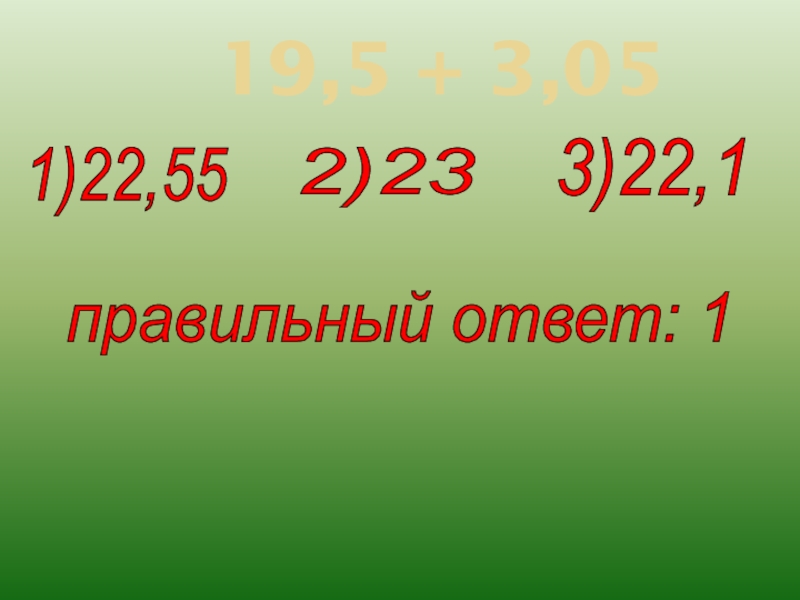 19,5 + 3,052)23 1)22,55 правильный ответ: 1 3)22,1