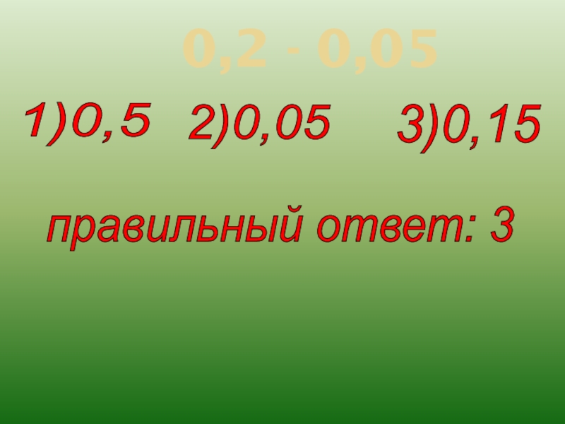 0,2 - 0,052)0,05 1)0,5 правильный ответ: 3 3)0,15