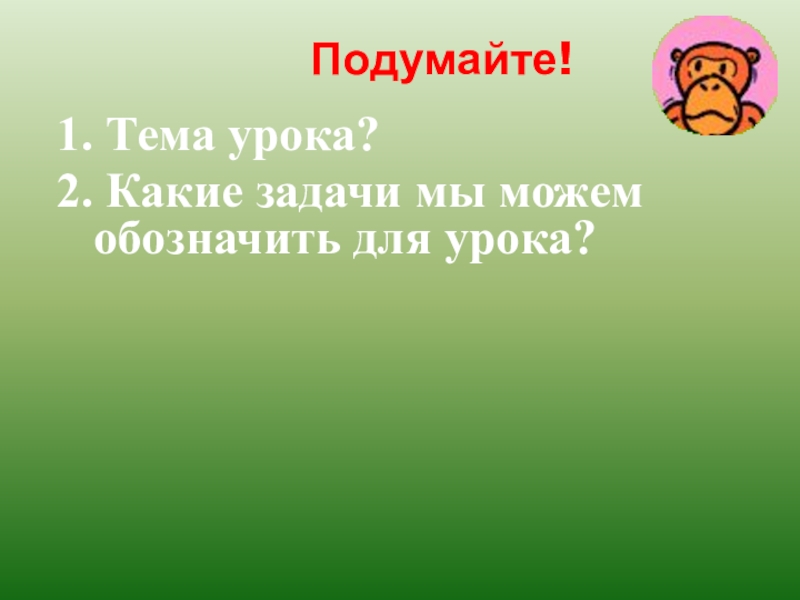 Подумайте!1. Тема урока?2. Какие задачи мы можем обозначить для урока?