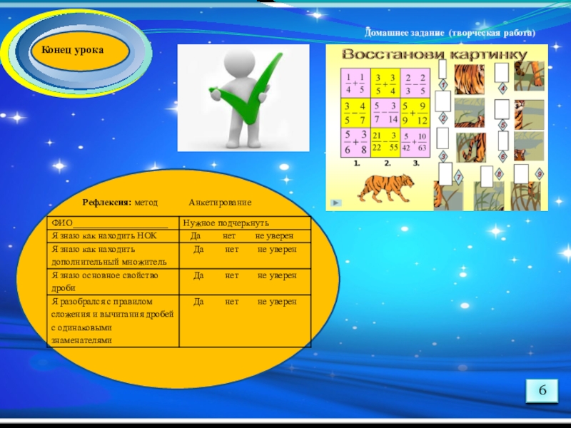2.Знает алгоритм сложения дробей с разными знаменателями;
