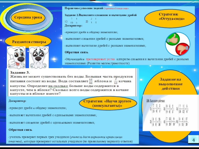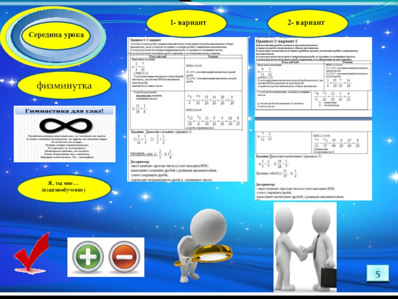 1.Выполняет сложение и вычитание дробей с одинаковыми знаменателями;