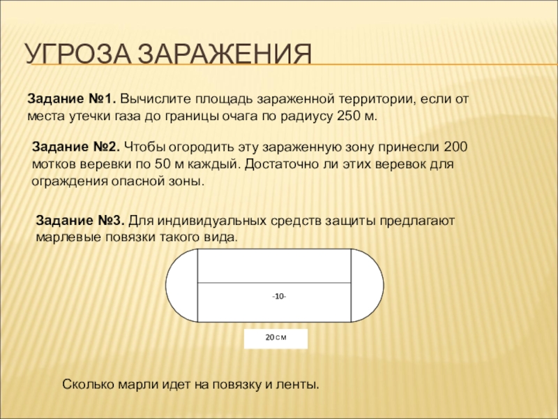 Задание №2. Чтобы огородить эту зараженную зону принесли 200 мотков веревки по 50 м каждый. Достаточно ли этих веревок для ограждения опасной зоны.
