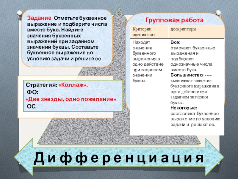 Все учащиеся: отметят буквенные выражения и подберут однозначные числа вместо букв;