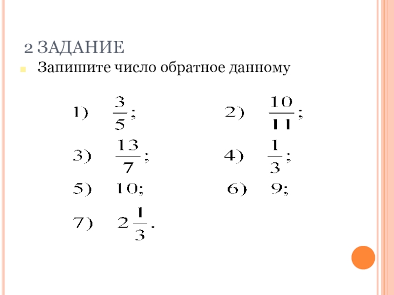 2 ЗАДАНИЕ  Запишите число обратное данному