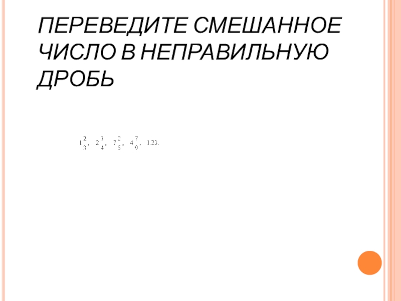 Слайд 3ПЕРЕВЕДИТЕ СМЕШАННОЕ ЧИСЛО В НЕПРАВИЛЬНУЮ ДРОБЬ