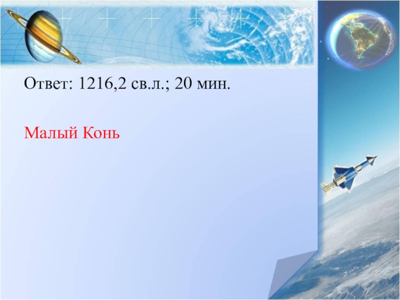 Ответ: 1216,2 св.л.; 20 мин.Малый Конь