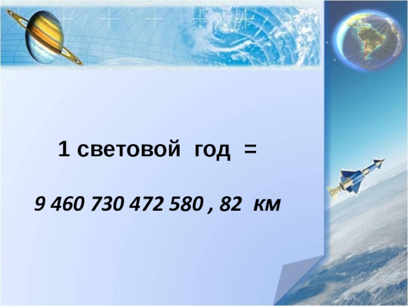 Слайд 91 световой год = 9 460 730 472 580 , 82 км