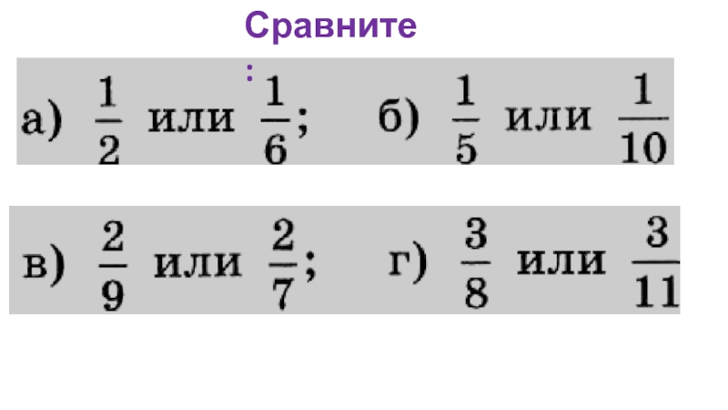 Презентация, доклад на тему Устная работа по теме Сравнение дробей