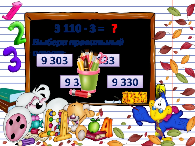 3 110 ∙ 3 = ?Выбери правильный ответ:9 3033 3339 3309 333