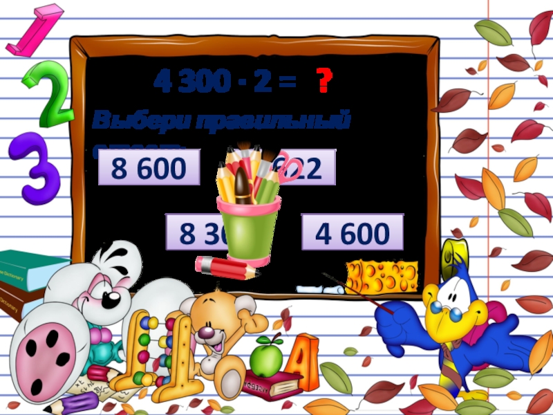 4 300 ∙ 2 = ?Выбери правильный ответ:4 6008 3008 6008 622