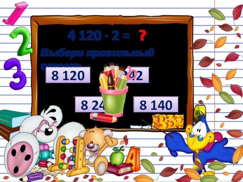 4 120 ∙ 2 = ?Выбери правильный ответ:8 1208 2428 2408 140