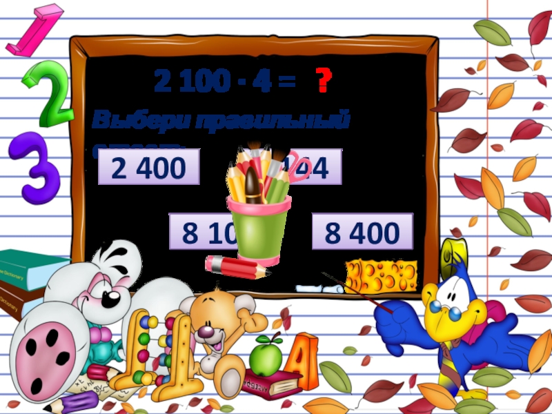 2 100 ∙ 4 = ?Выбери правильный ответ:2 4008 1008 4008 144