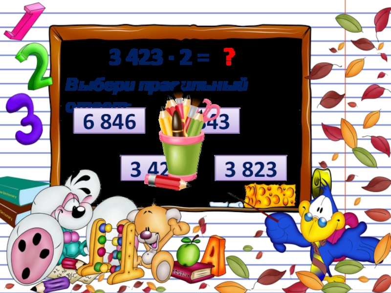 3 423 ∙ 2 = ?Выбери правильный ответ:3 4266 8436 8463 823