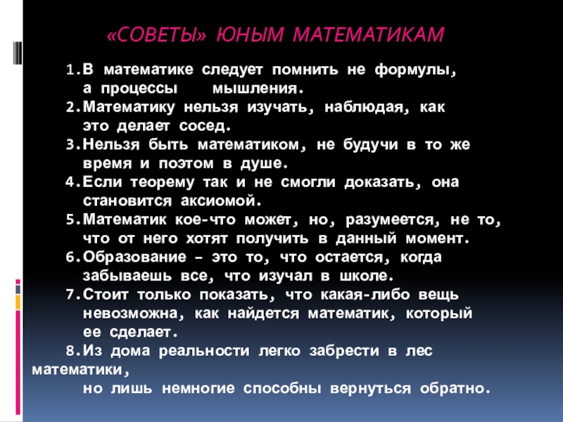 «СОВЕТЫ» ЮНЫМ МАТЕМАТИКАМ