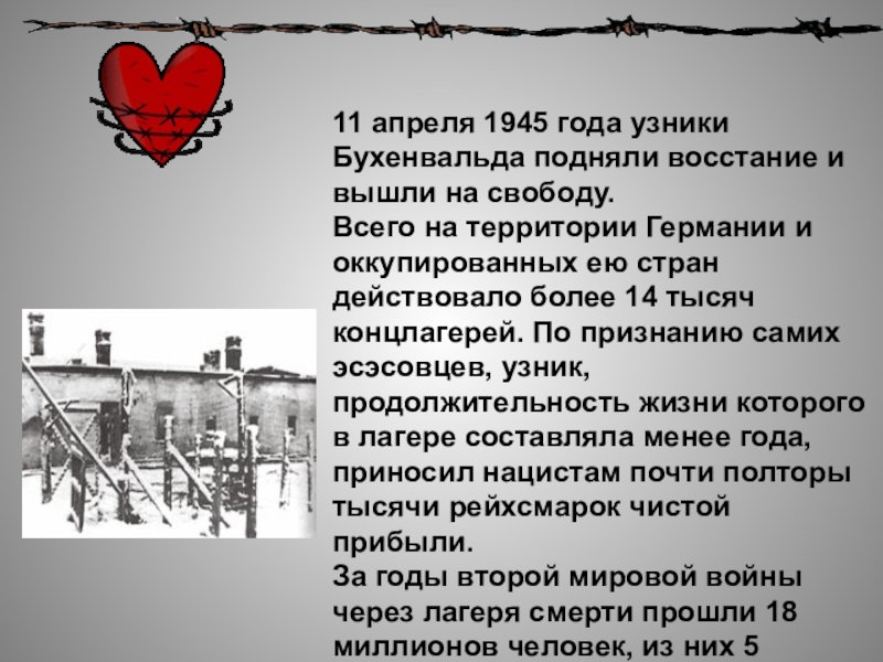 Слайд 2УЗНИКАМ КОНЦЕНТРАЦИОННЫХ ЛАГЕРЕЙ ПОСВЯЩАЕТСЯ