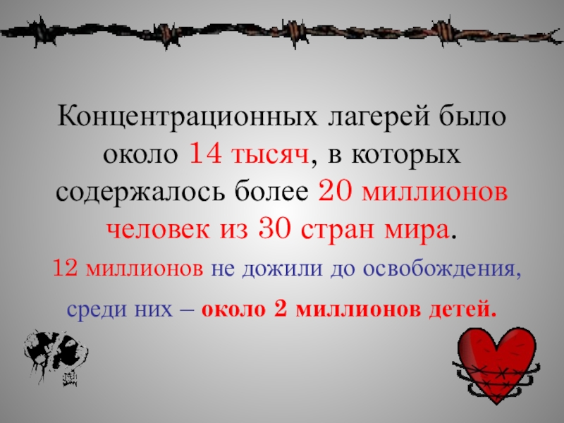 Слайд 8Концентрационных лагерей было около 14 тысяч, в которых содержалось более 20