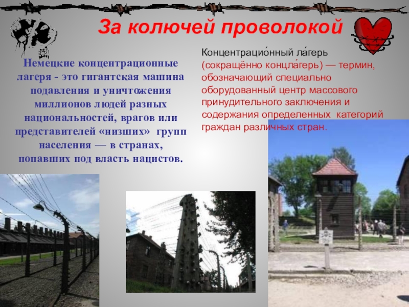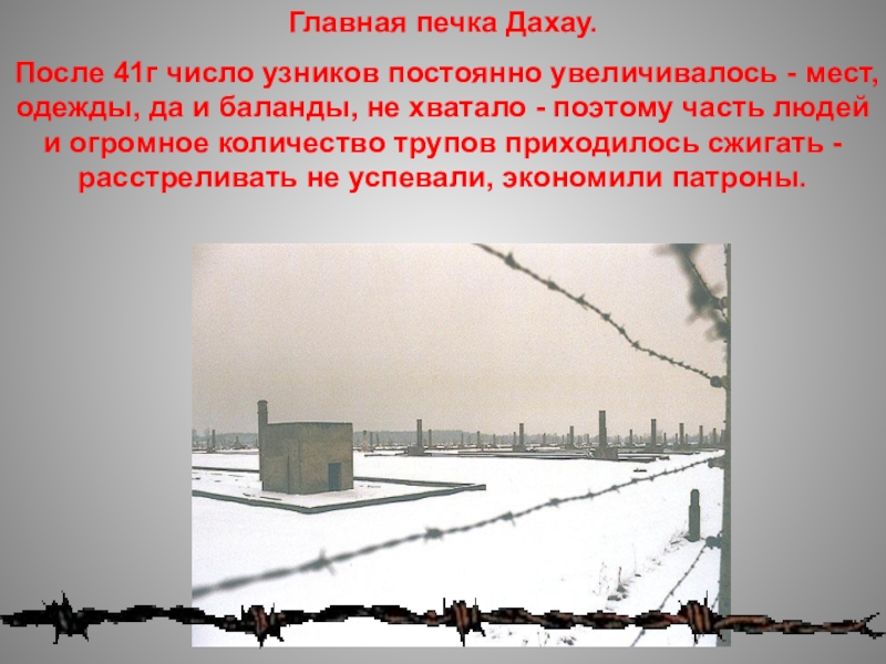 Слайд 7За колючей проволокой