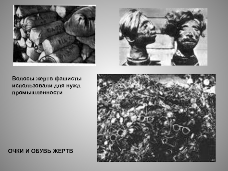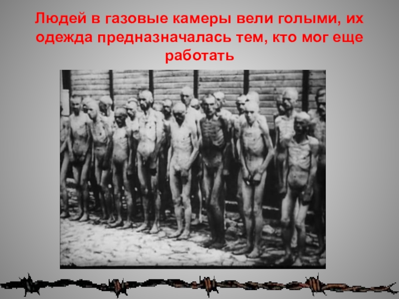 Слайд 46Людей в газовые камеры вели голыми, их одежда предназначалась тем, кто