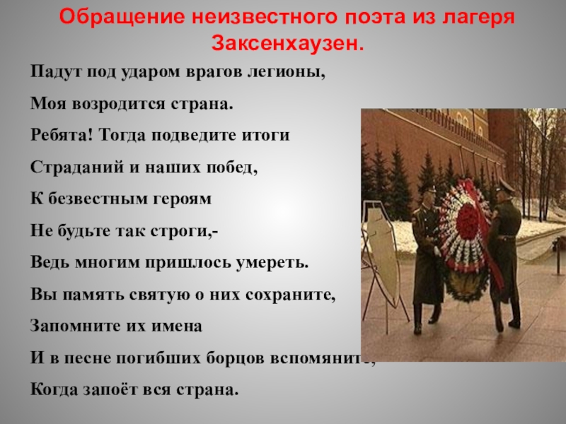 Обращение неизвестного поэта из лагеря Заксенхаузен.