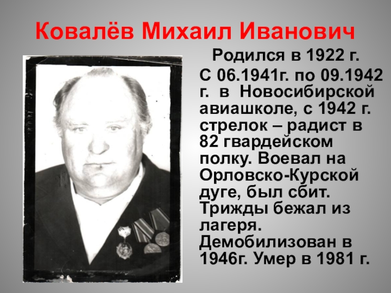 Слайд 76Ковалёв Михаил Иванович