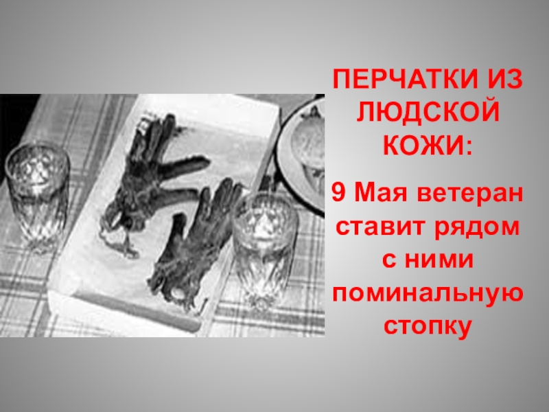 Слайд 51ПЕРЧАТКИ ИЗ ЛЮДСКОЙ КОЖИ:
