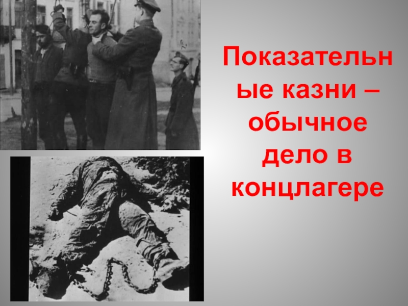 Слайд 49Показательные казни – обычное дело в концлагере